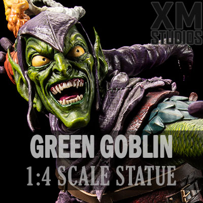 - Showcasing Green Goblin on his Goblin Glider, unhinged and undeterred, fuelled by his insanity to wreak havoc. - Two (2) Headsculpt - 1 featuring goblin mask, 1 of Norman Osborn sans mask. - Two (2) Interchangeable left arms: 1 with out-stretched arm, 1 clutching his goblin mask - Two (2) Interchangeable right hands: 1 holding his iconic pumpkin bomb, 1 with his fists clenched. - Crafted from cold-cast porcelain - Each painstakingly handcrafted statue is individually hand-painted with the highest possible quality finish. |