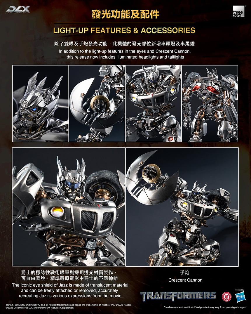 - Box Contents Jazz figure Crescent Cannon Eye shield DLX Action stand |