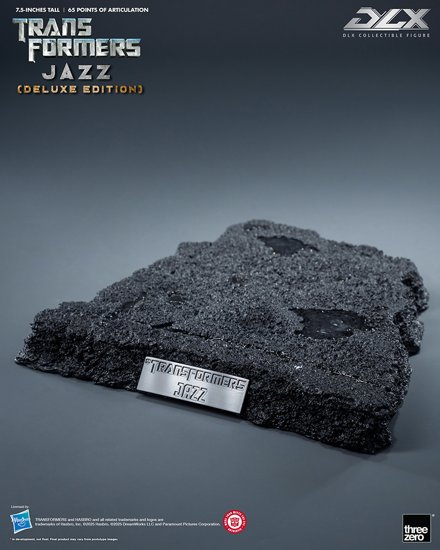 - Box Contents Jazz figure Crecent Cannon Eye shield Damaged spine Set of interchangeable battle-damaged outer armor Diorama base DLX Action stand |