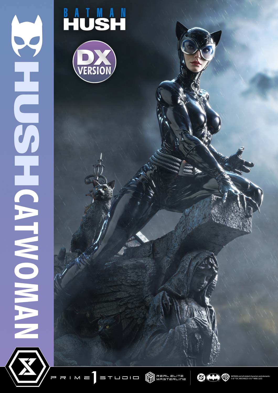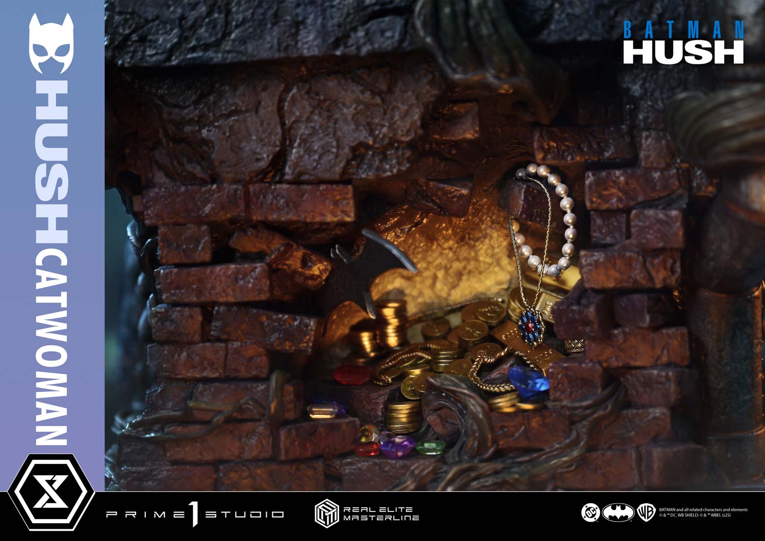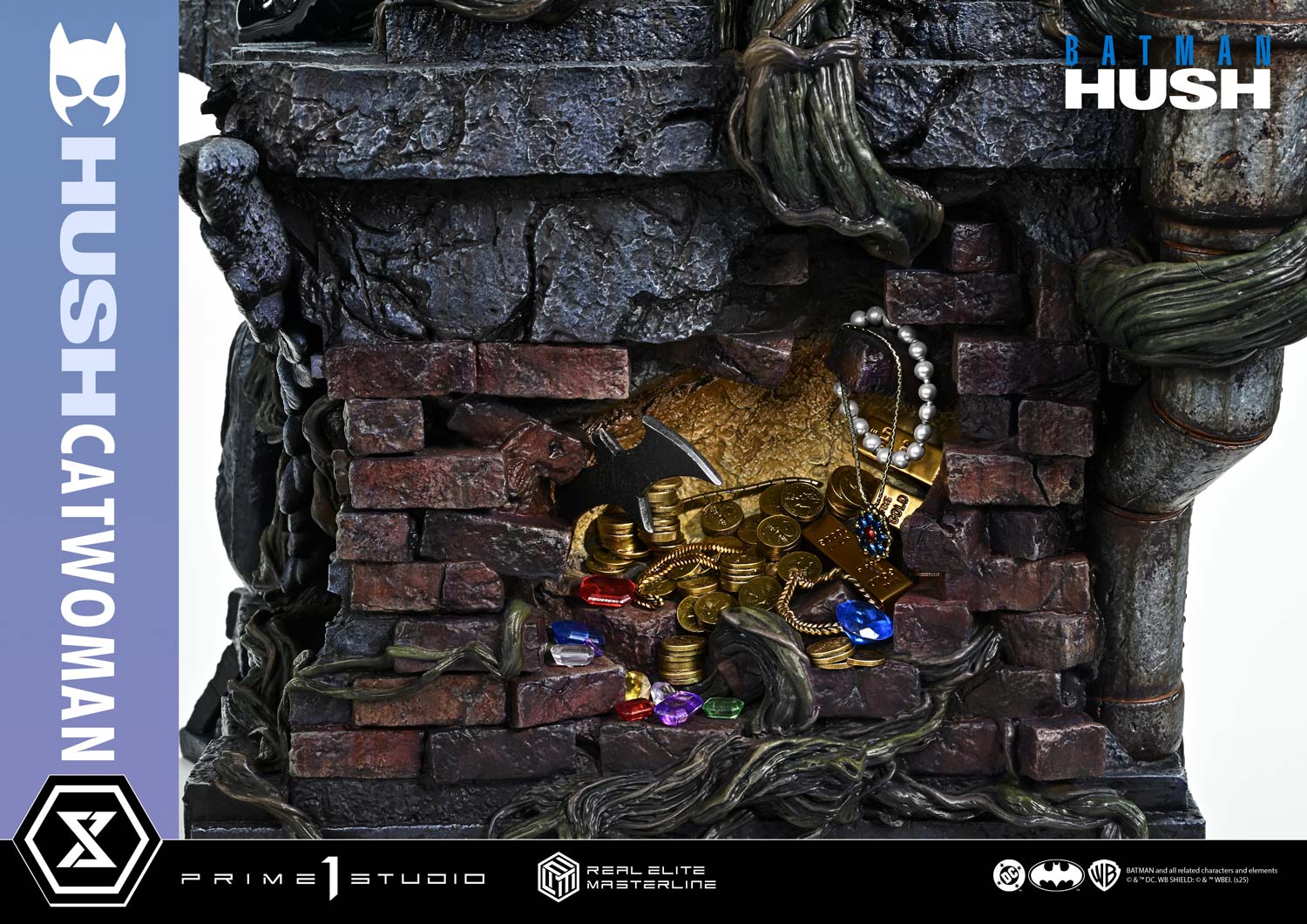 - Batman: Hush-Themed Base - Three (3) Swappable Heads (with Goggles, Normal, Smiling) - Two (2) Swappable Left Arms (Holding Whip, Bare Hand) - Two (2) Head Stands |