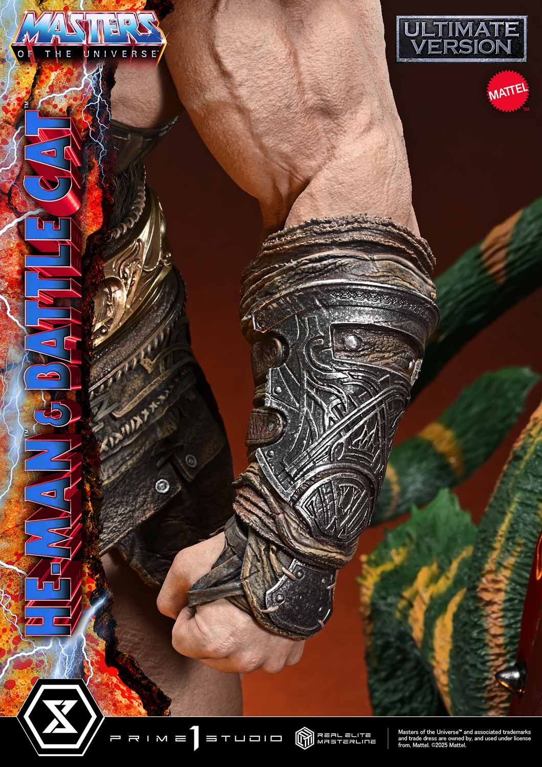 - Two (2) Swappable Upper Bodies (A: Facing Forward, B: Looking Upward) - One (1) Swappable Right Hand for Upper Body A (Power Sword) - Battle Cat - Two (2) Swappable Mouths (Open, Closed) - One (1) Bust Stand - Masters of the Universe-Themed Base with LED Illumination |
