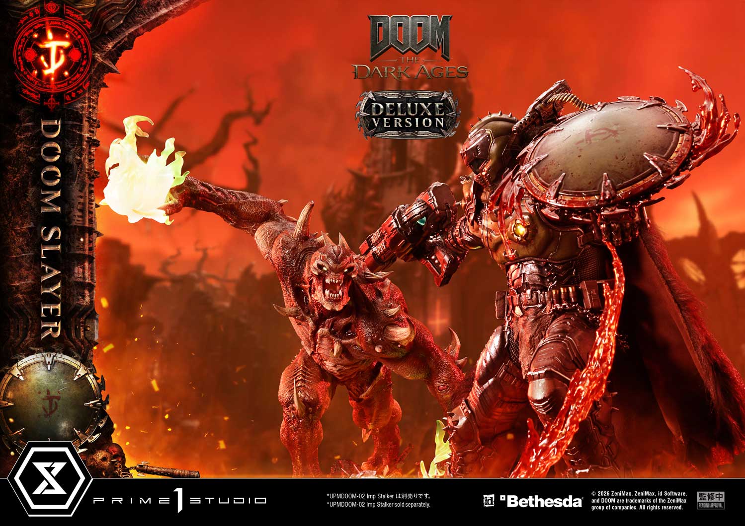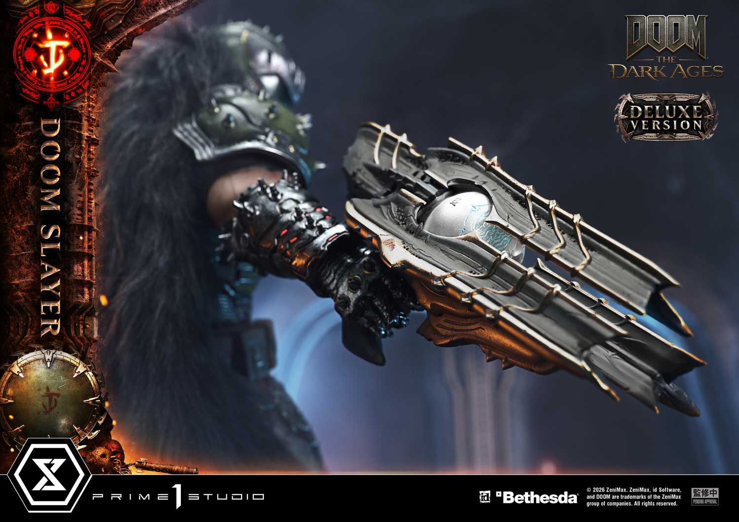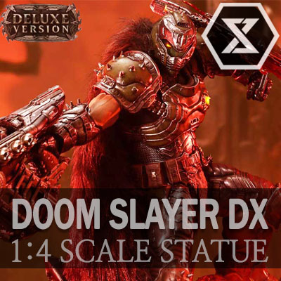 DOOM Slayer - Two (2) Swappable Heads (Helmeted: Downward-Facing, Right-Facing) - Two (2) Swappable Right Arms (Lowered, Horizontal) - Four (4) Swappable Right Hands for Horizontal (Super Shotgun, Chainshot, Pulverizer, Cycler) - Two (2) Swappable Left Arms (Shield Saw: Normal, Bloody) - LED Illumination (Eyes Inside Helmet, Tether, Chainshot, Cycler) - DOOM: The Dark Ages-Themed Base with LED Illumination - Two (2) Swappable Soldier Heads (Damaged, Undamaged) |