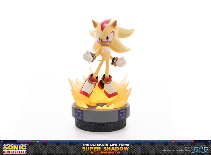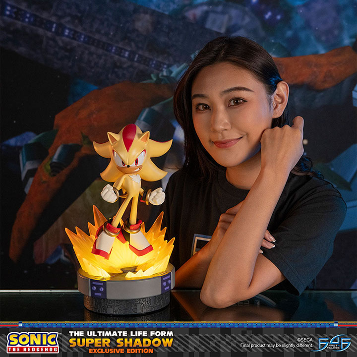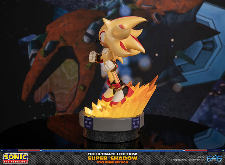- Sonic The Hedgehog - The Ultimate Life Form: Super Shadow painted resin statue - Limited Edition Numbering - Authentication Card - Base design inspired by the Space Colony ARK patterns from the Final hazard battle - Two LED functions for the aura surrounding Shadow |