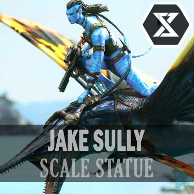 - 20.5 kgStatue of Jake Sully flying on skimwing - Coral reef Ocean themed-base - LED-Illuminated Base