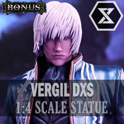 - Devil May Cry 3-themed base. - Three (2) Swappable head parts (Normal head & dual display head) - Three (3) Swappable left-hand parts (Holding gun, holding scabbard & holding Force Edge) - Two (2) Logo displays (NA/JP Version & EU Version)