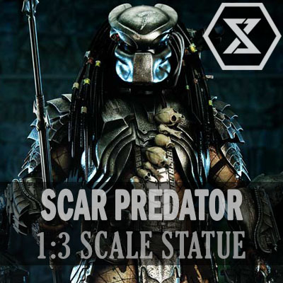 - Yautja-constructed pyramid themed-base - Two (2) Swappable head parts - One (1) Movable Headstand - One (1) Title Plaque - LED illumination on Helmet-mounted Targeting Laser, Wrist Control Panel & Shoulder-mounted Plasmacaster |