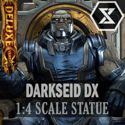 - One (1) LED-illuminated Darkseid Throne Base - Five (5) Swappable head parts - Four (4) Swappable right arm parts (Mother Box, Tablet, Finger and Down) - Three (3) Swappable left arm parts (Resting, Down and Up) - Four (4) headstands - LED illumination in the eyes of all faces, Mother Box, and Tablet