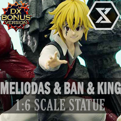 - Seven Deadly Sins-themed base - Two (2) Swappable Head parts for Meliodas (Normal and Smile) - Three (3) Swappable Head parts for King (Normal, Angry and Smile) - Three (3) Swappable Head parts for Ban (Normal, Tongue and Smile)