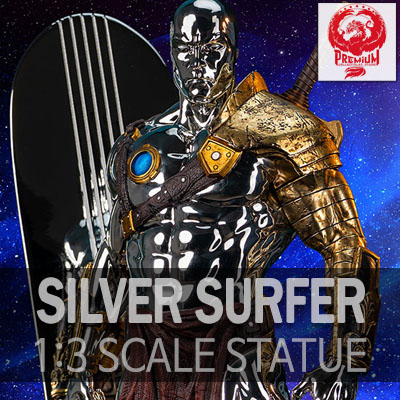 Standing an impressive 30.5¡° tall, this beautiful collectible captures the stoic intensity of the Silver Surfer armed to battle against his will, (thanks to the blue control disc fixed to his chest) in the fighting pits of Sakaar. This popular rendition of the classic Marvel character is decked out in an assortment of armor and weapons cobbled together from the arena¡¯s makeshift arsenal.