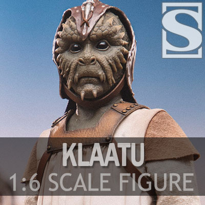 - Headsculpt of Klaatu, based on Star Wars: Episode VI – Return of the Jedi - Tailored costume, including: - Vest - Trousers - Hood - Armor - Belt - Boots - Four (4) total hands: Two (2) Relaxed hands Two (2) Gripping hands - Vibrostaff - Black hexagon base |