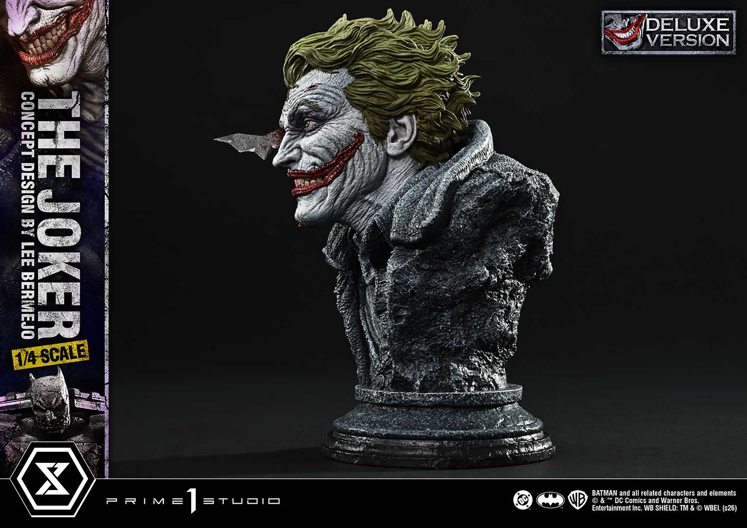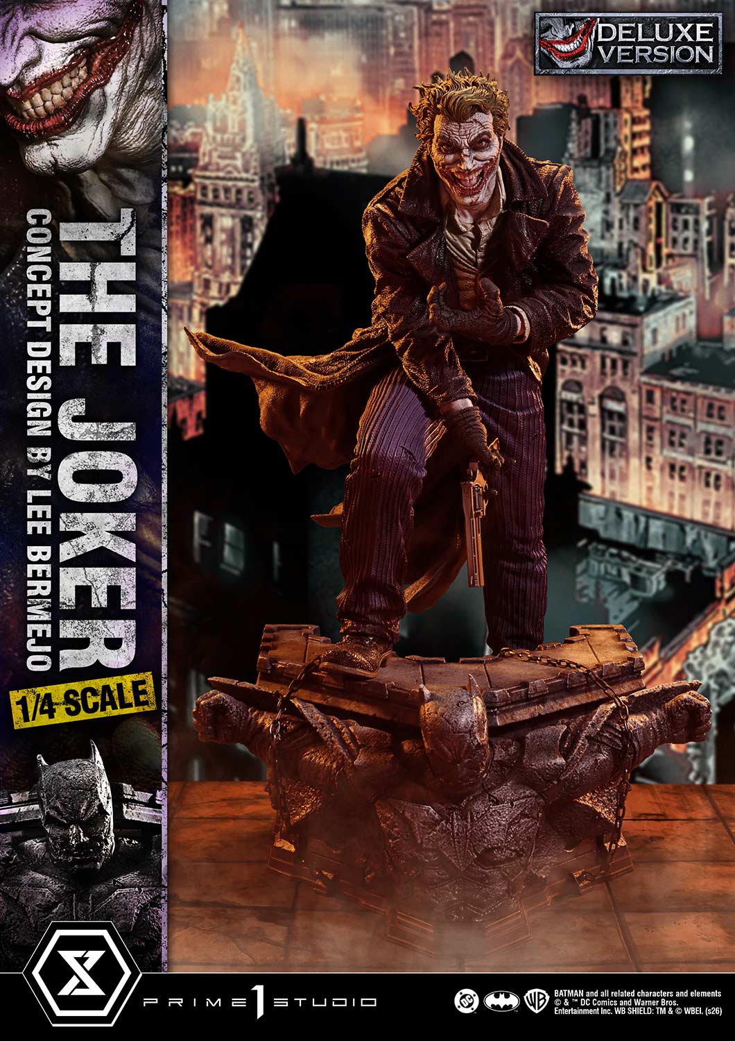 - The Joker-Themed Base - Three (3) Swappable Heads (Grinning, Shouting, Damaged) - Two (2) Head Stands |