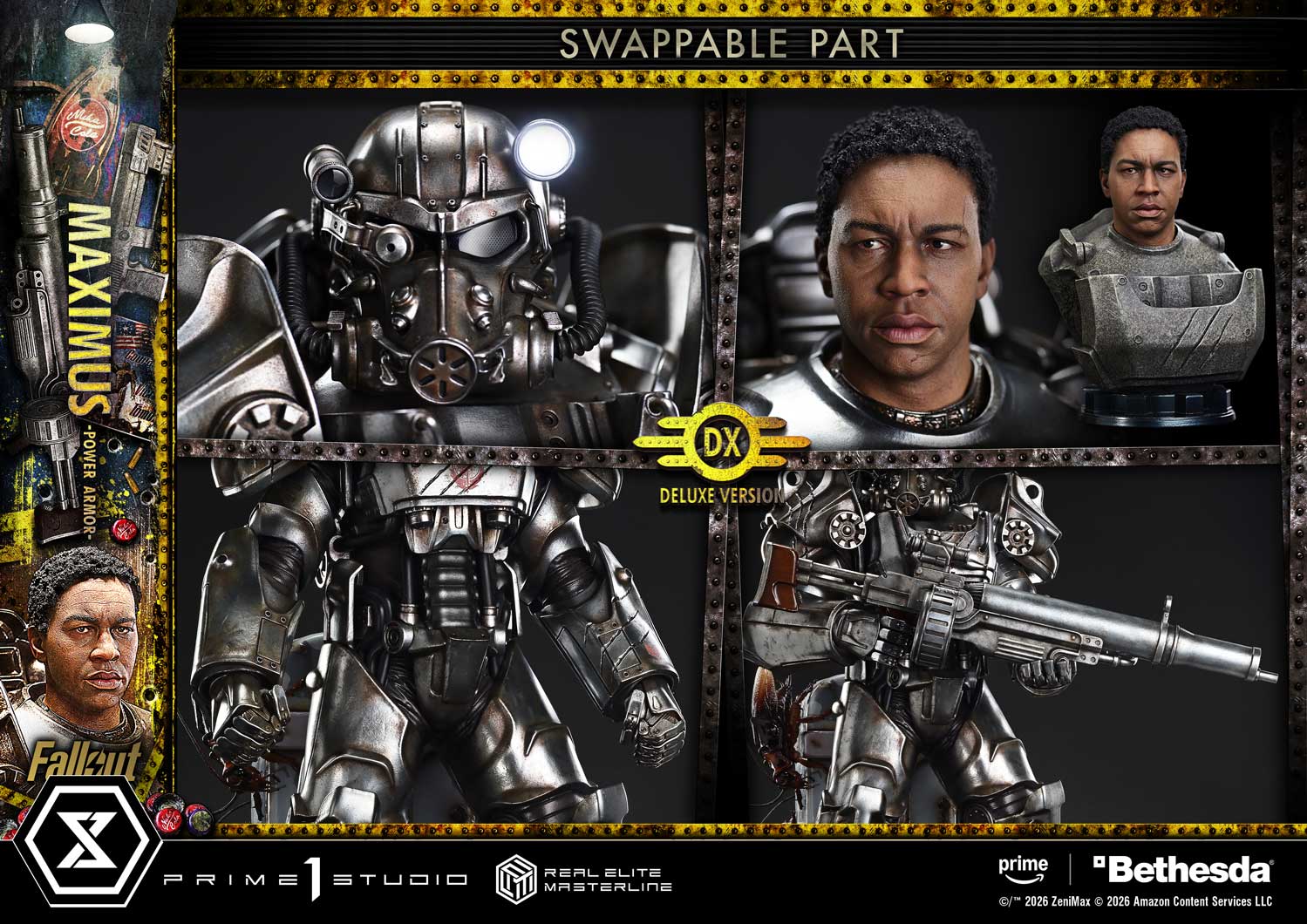 - Fallout-themed Base - Two (2) Swappable Heads (Helmet-on, Helmet-off) - Two (2) Swappable Pairs of Arms (Fist, Assault Rifle) - One (1) Head Stand - LED Illumination (Head Light) |