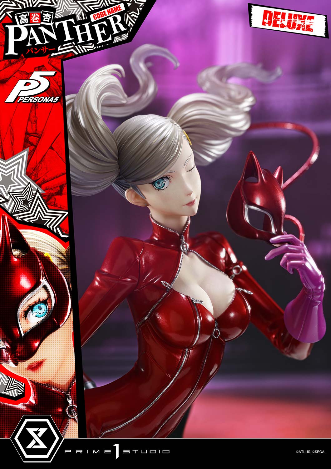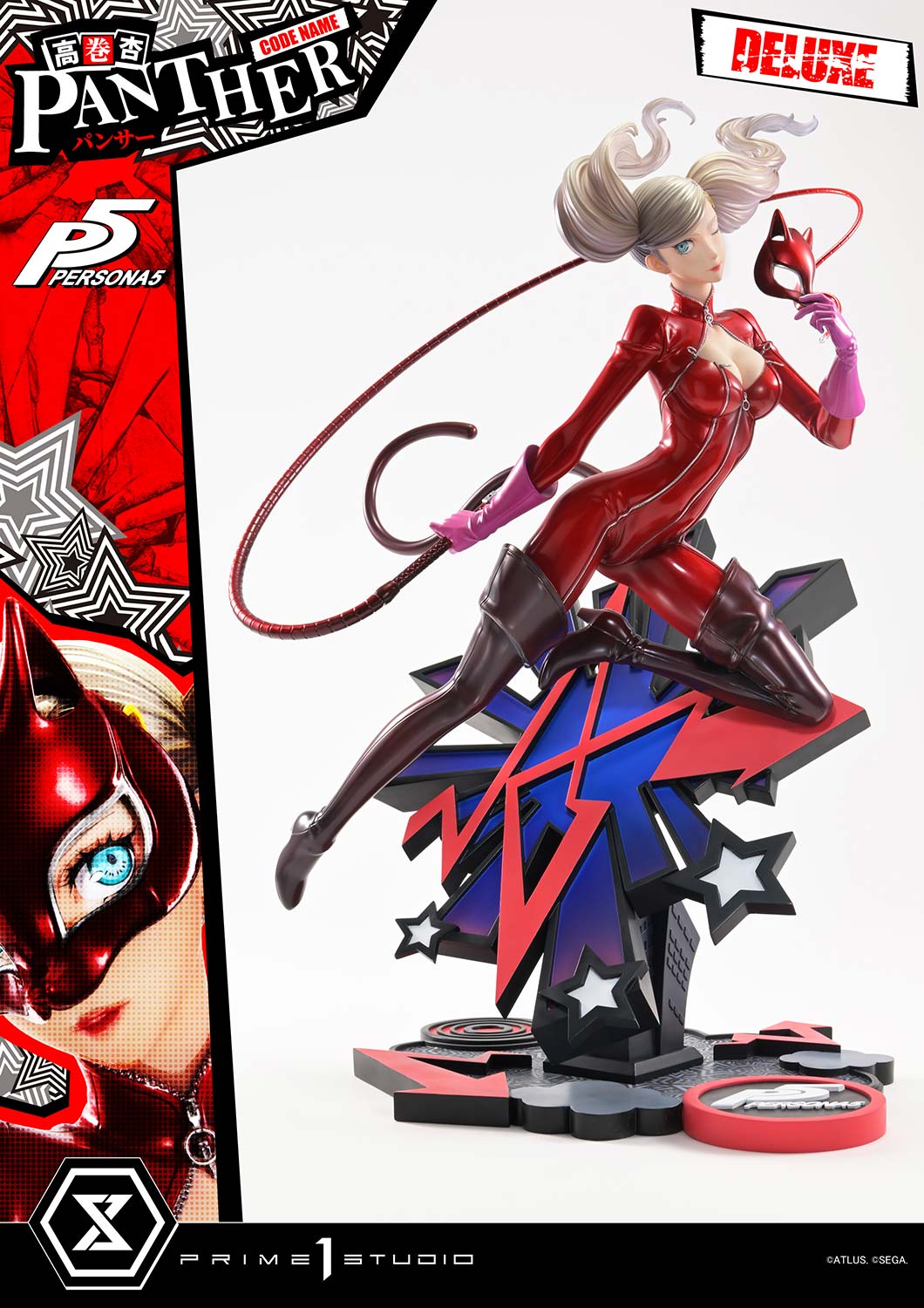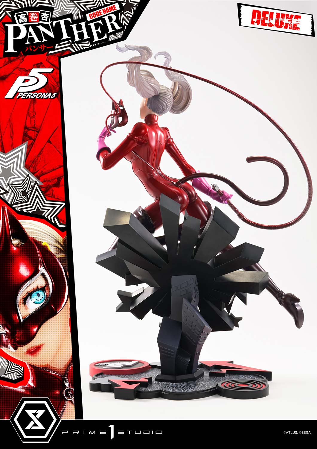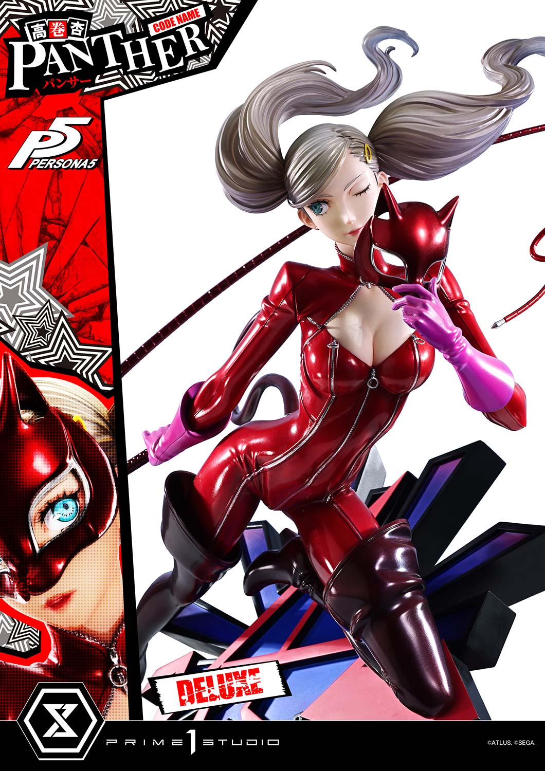 - Persona 5-themed Base - Two (2) Swappable Heads (Masked, Unmasked) - Two (2) Swappable Right Arms (Whip, Peace Sign) - Three (3) Swappable Left Arms (Closed Hand, Open Hand, Holding a Mask)