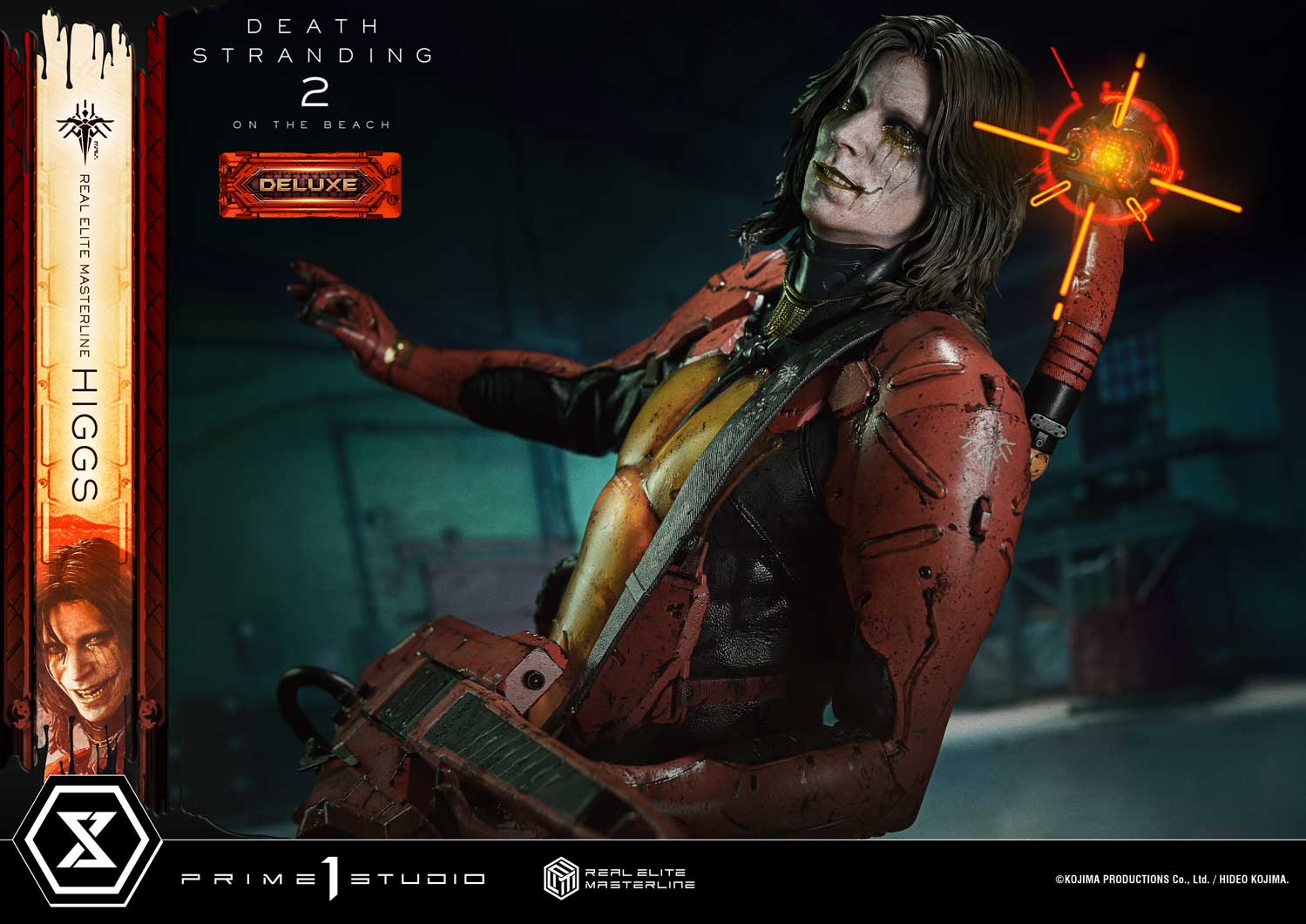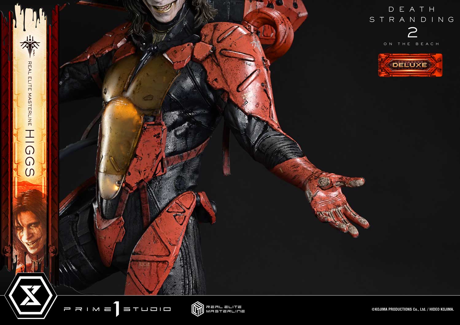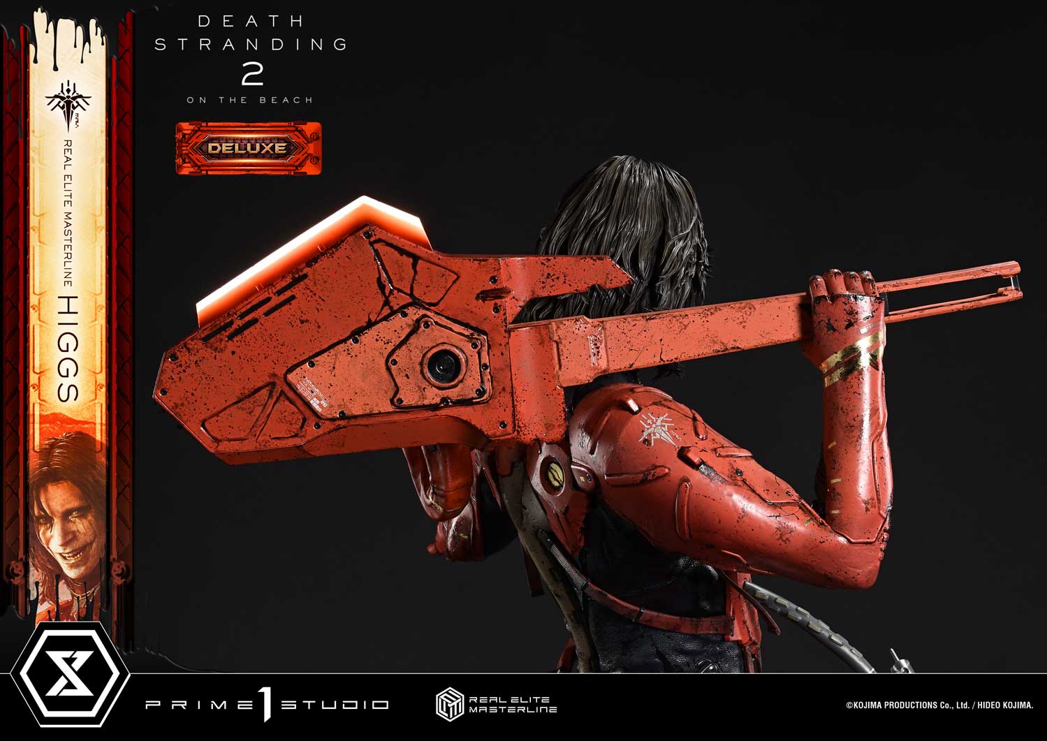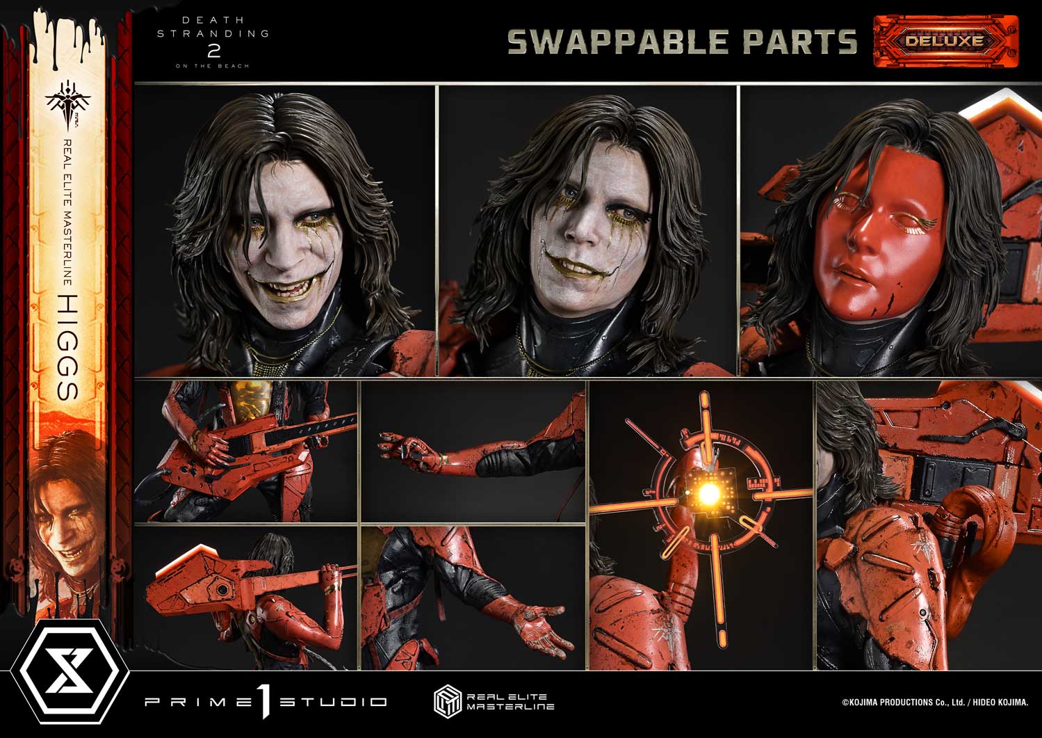 - DEATH STRANDING 2: ON THE BEACH-themed Base - Three (3) Swappable Heads (Chin-down, Chin-up, Chin-up with Red Mask) - Three (3) Swappable Right Arms (Shredding, Extended, Slung Over Shoulder) - Two (2) Swappable Left Arms (Fingering, Extended) - Two (2) Swappable Battle Guitars (Gun, Axe) - Three (3) Odradeks (Sensor Activated, Sensor Deactivated, Retracted) - Two (2) Swappable Intestines (In, Out) - LED Illumination (Odradek: Sensor Activated / Deactivated, Stomach, Battle Guitar: Axe) |