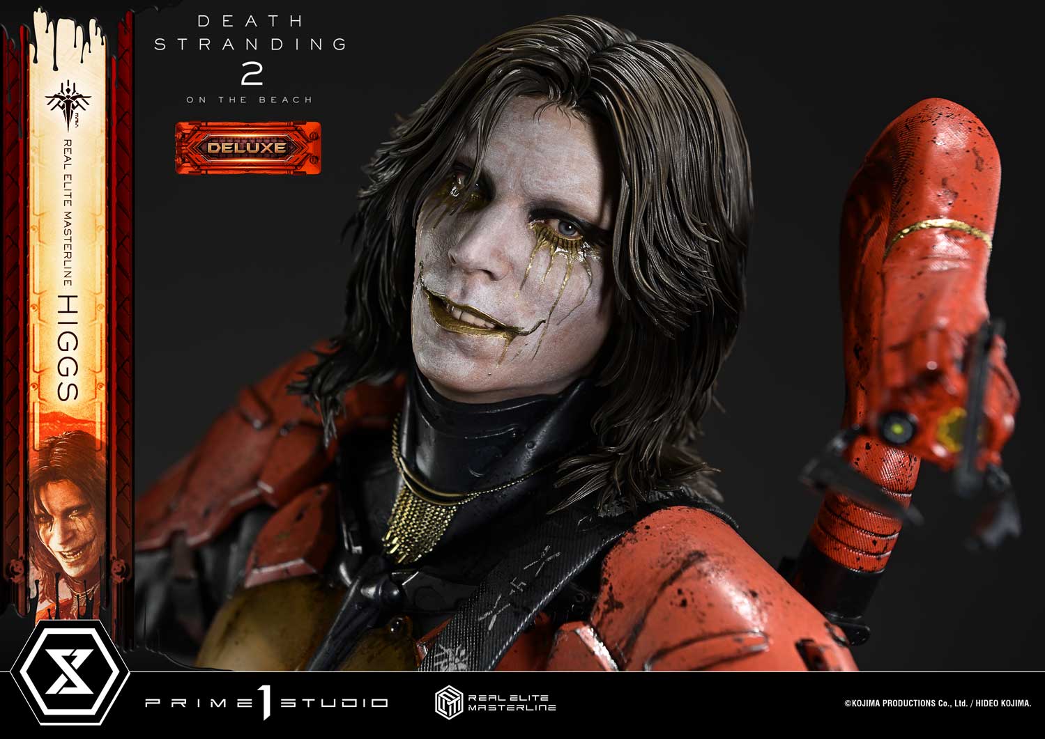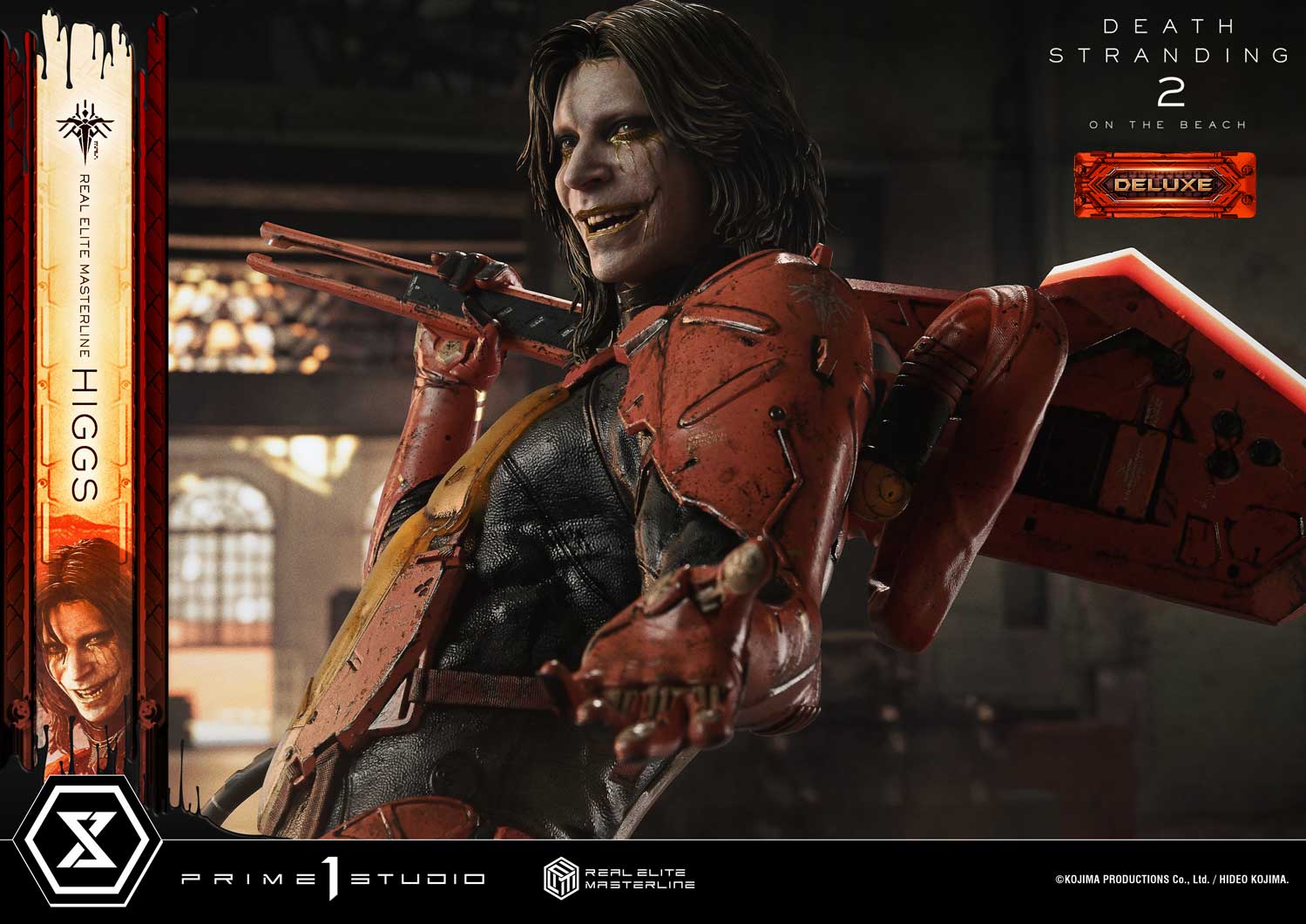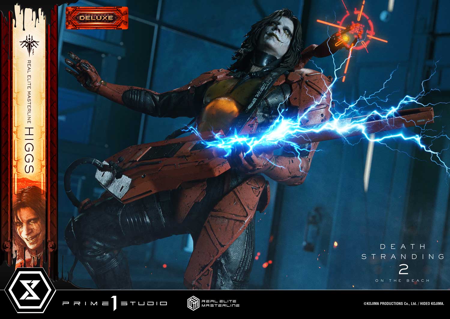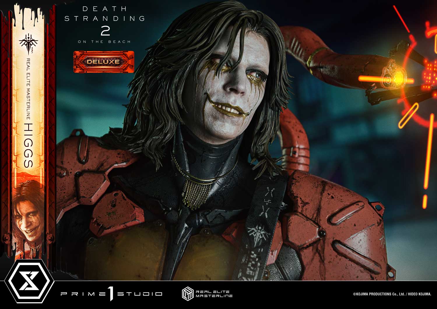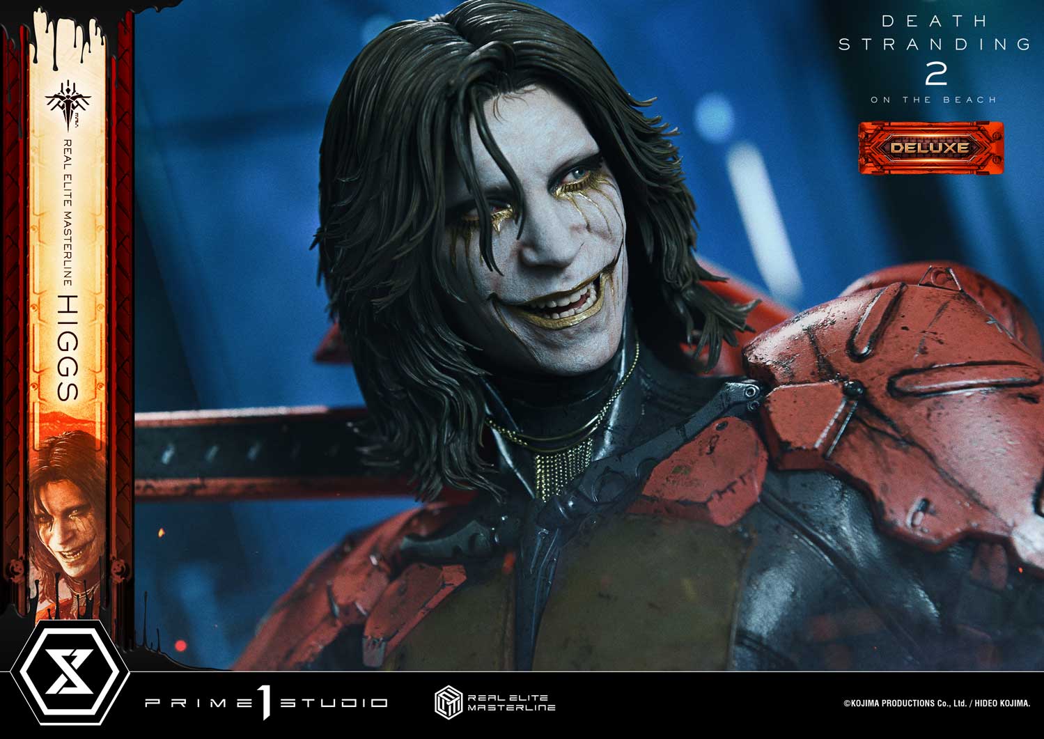 - DEATH STRANDING 2: ON THE BEACH-themed Base - Three (3) Swappable Heads (Chin-down, Chin-up, Chin-up with Red Mask) - Three (3) Swappable Right Arms (Shredding, Extended, Slung Over Shoulder) - Two (2) Swappable Left Arms (Fingering, Extended) - Two (2) Swappable Battle Guitars (Gun, Axe) - Three (3) Odradeks (Sensor Activated, Sensor Deactivated, Retracted) - Two (2) Swappable Intestines (In, Out) - LED Illumination (Odradek: Sensor Activated / Deactivated, Stomach, Battle Guitar: Axe) |